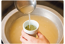 華味鳥の鶏がらと丸鶏をじっくり炊きだして旨みを引き出す「鶏かさね炊き製法」。