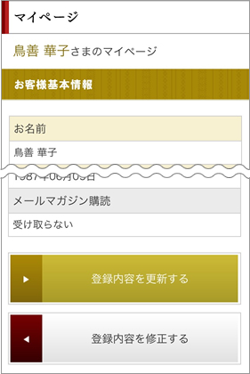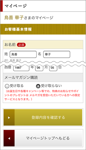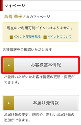 メールマガジン購読申込み方法と同様の手順で「お客様基本情報」ページを表示します。