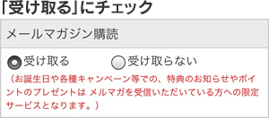 ページ下部の「メールマガジン購読」項目の「受け取る」にチェックを入れ、「登録内容を確認する」ボタンをクリックしてください。