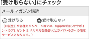 ページ下部の「メールマガジン購読」の「受け取らない」にチェックを入れ、「登録内容を確認する」ボタンをクリックしてください。