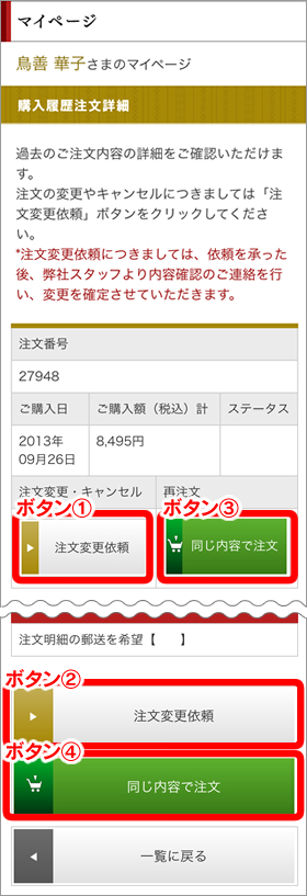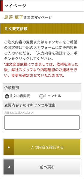 お届け先を修正する場合は、「修正する」ボタンをクリックし、変更箇所を入力し確認画面へ進んでください。