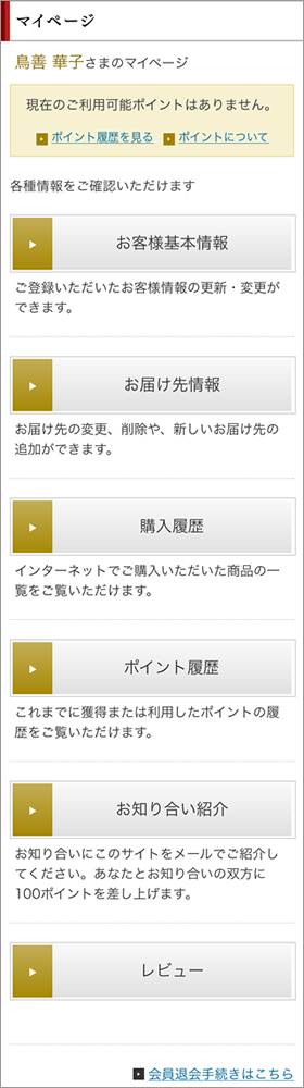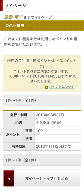 お手持ちのポイント数と、有効期限をご確認いただけます。