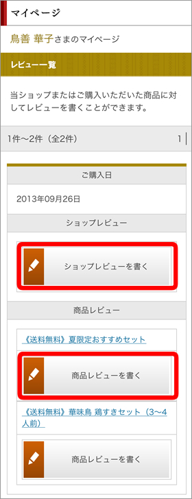 当ショップまたはご購入いただいた商品に対してレビューを書くことができます。