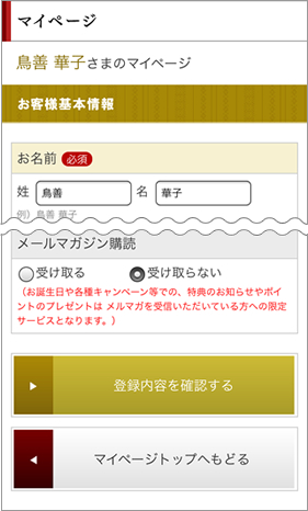お客様基本情報画面にて修正する箇所を入力し、「登録内容を確認する」ボタンをクリックしてください。